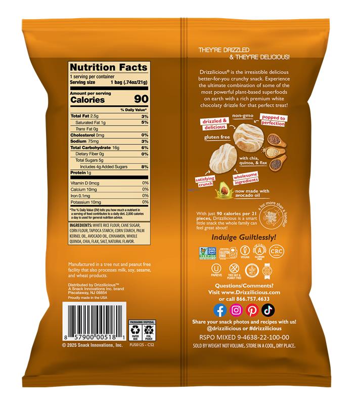 All this for only 90 calories per 21 pieces!? Drizzilicious is a smart little snack the whole family can feel great about!