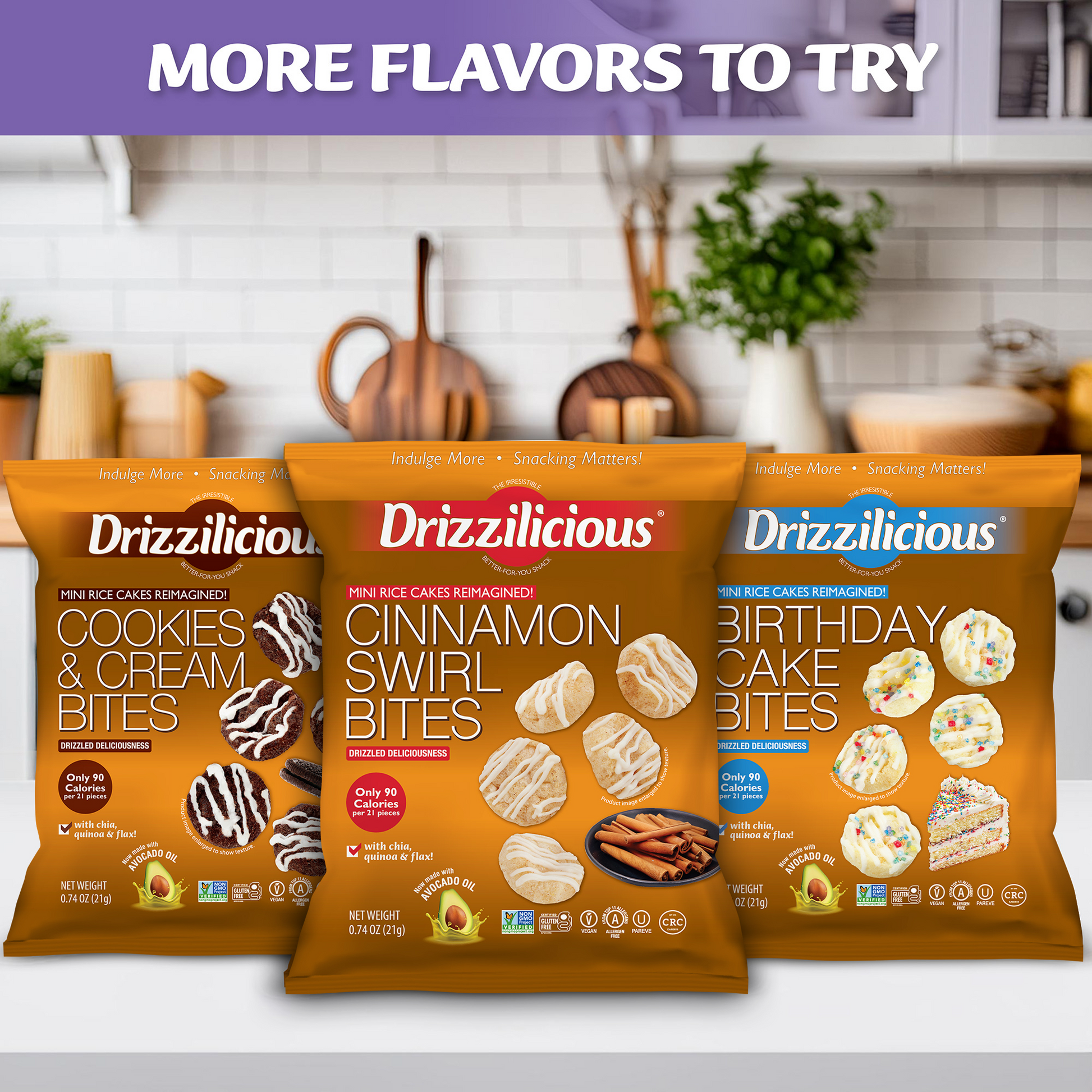 All this for only 90 calories per 21 pieces!? Drizzilicious is a smart little snack the whole family can feel great about!