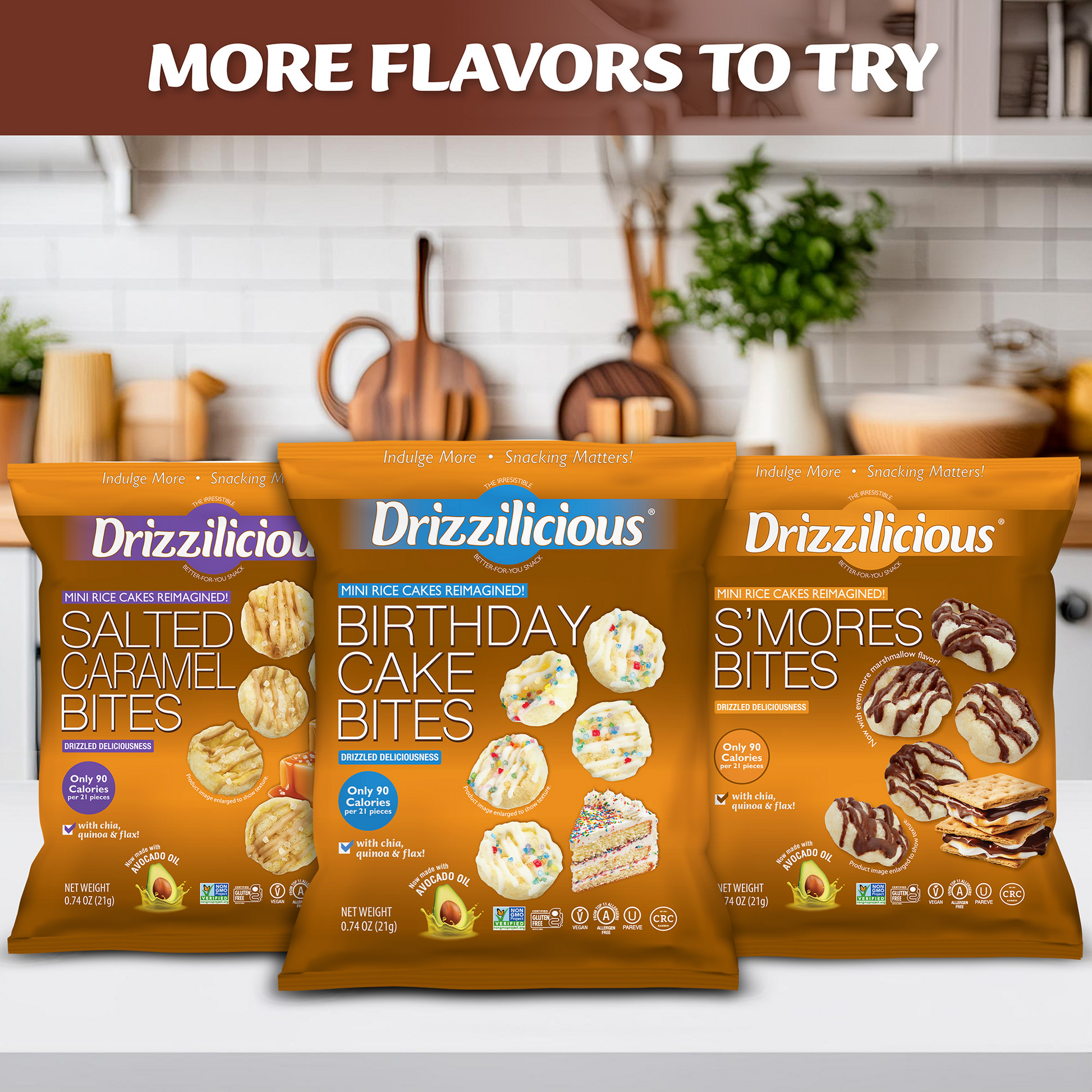 All this for only 90 calories per 21 pieces!? Drizzilicious is a smart little snack the whole family can feel great about!