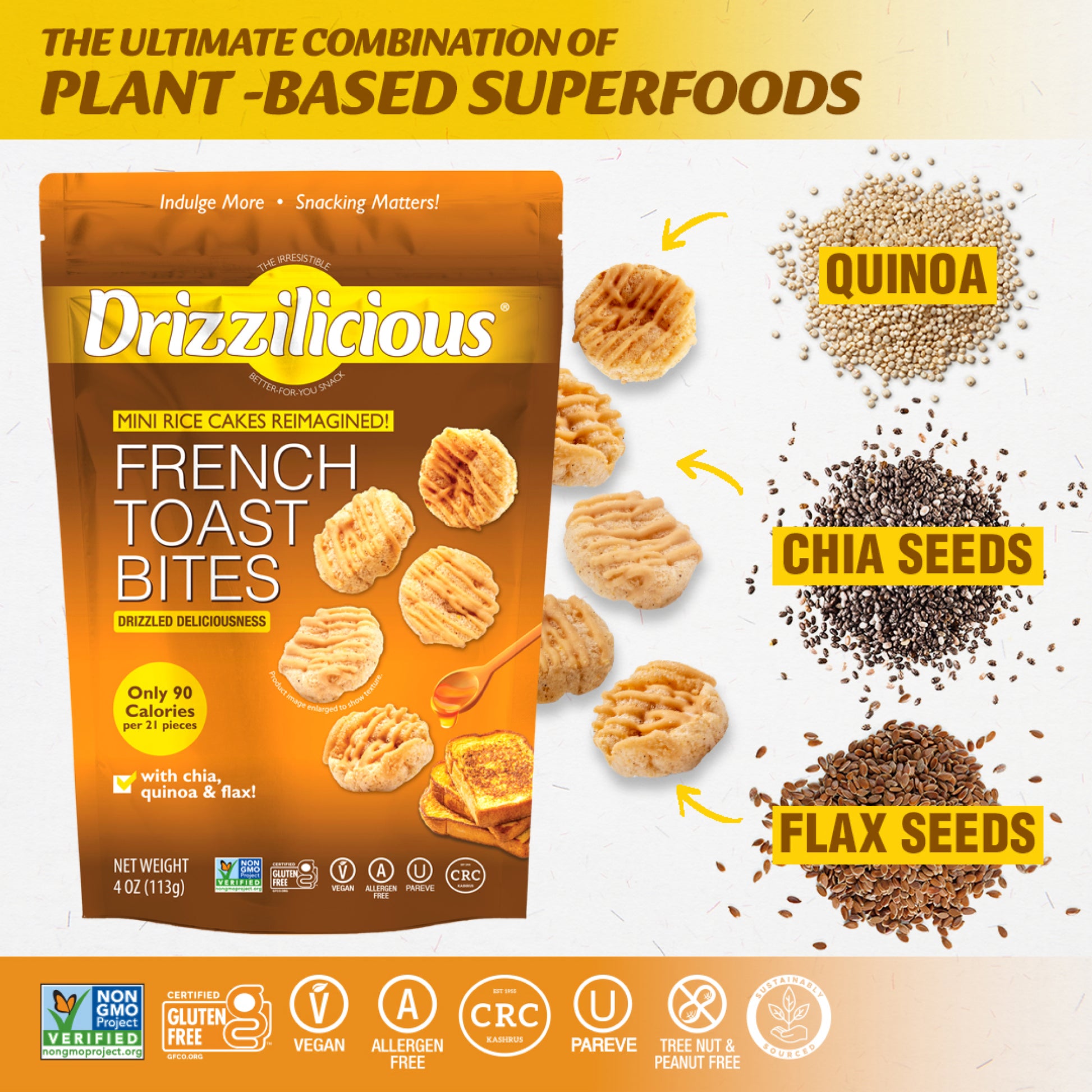 Our Drizzilicious French Toast bites are mini rice cakes reimagined!