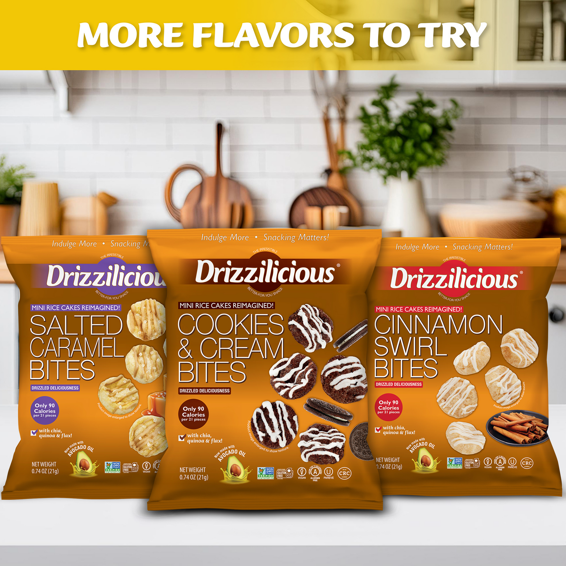 All this for only 90 calories per 21 pieces!? Drizzilicious is a smart little snack the whole family can feel great about!