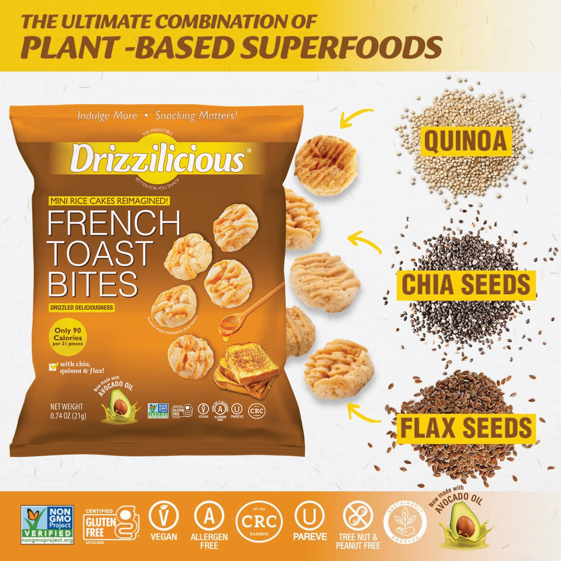 Our Drizzilicious French Toast bites are mini rice cakes reimagined!