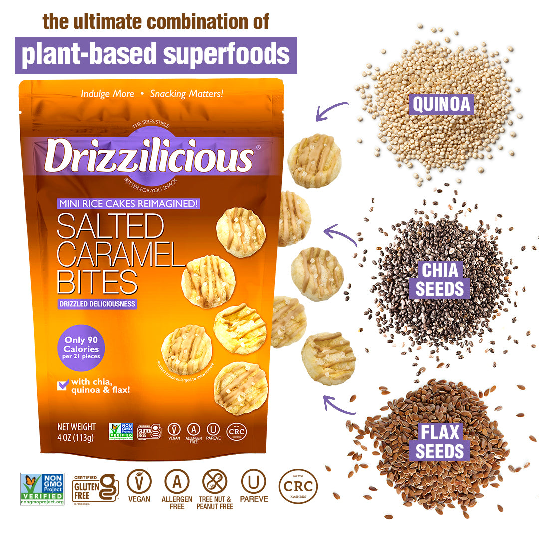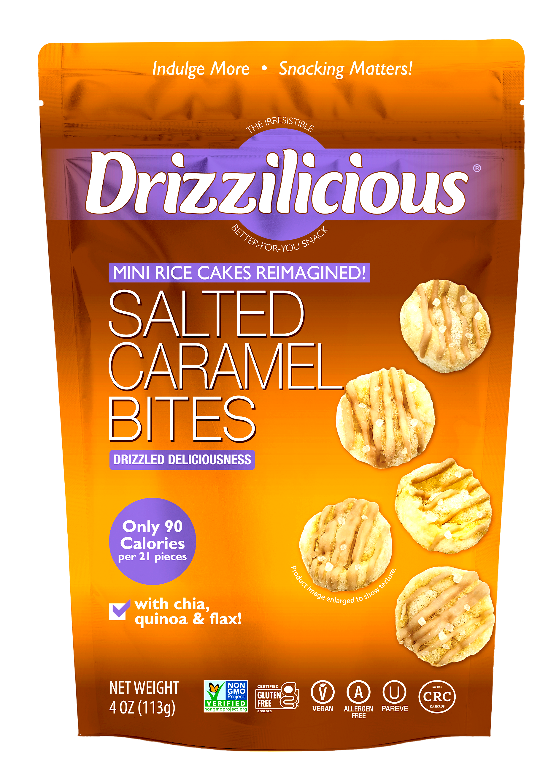 Our Drizzilicious Salted Caramel bites are mini rice cakes reimagined!