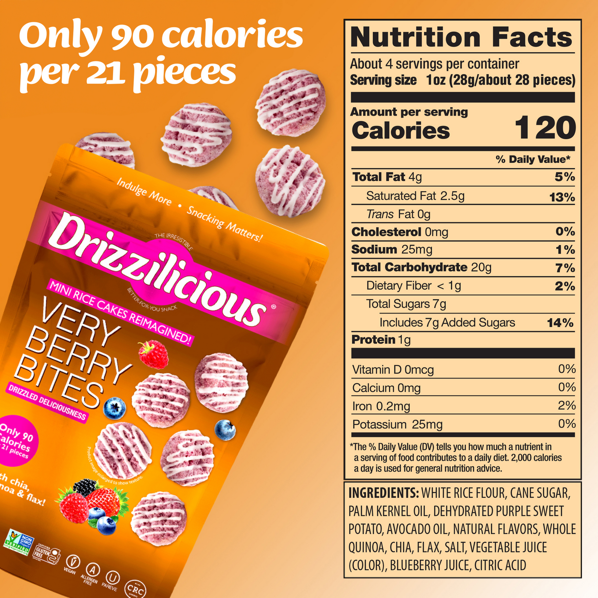 Our Drizzilicious Very Berry bites are mini rice cakes reimagined!