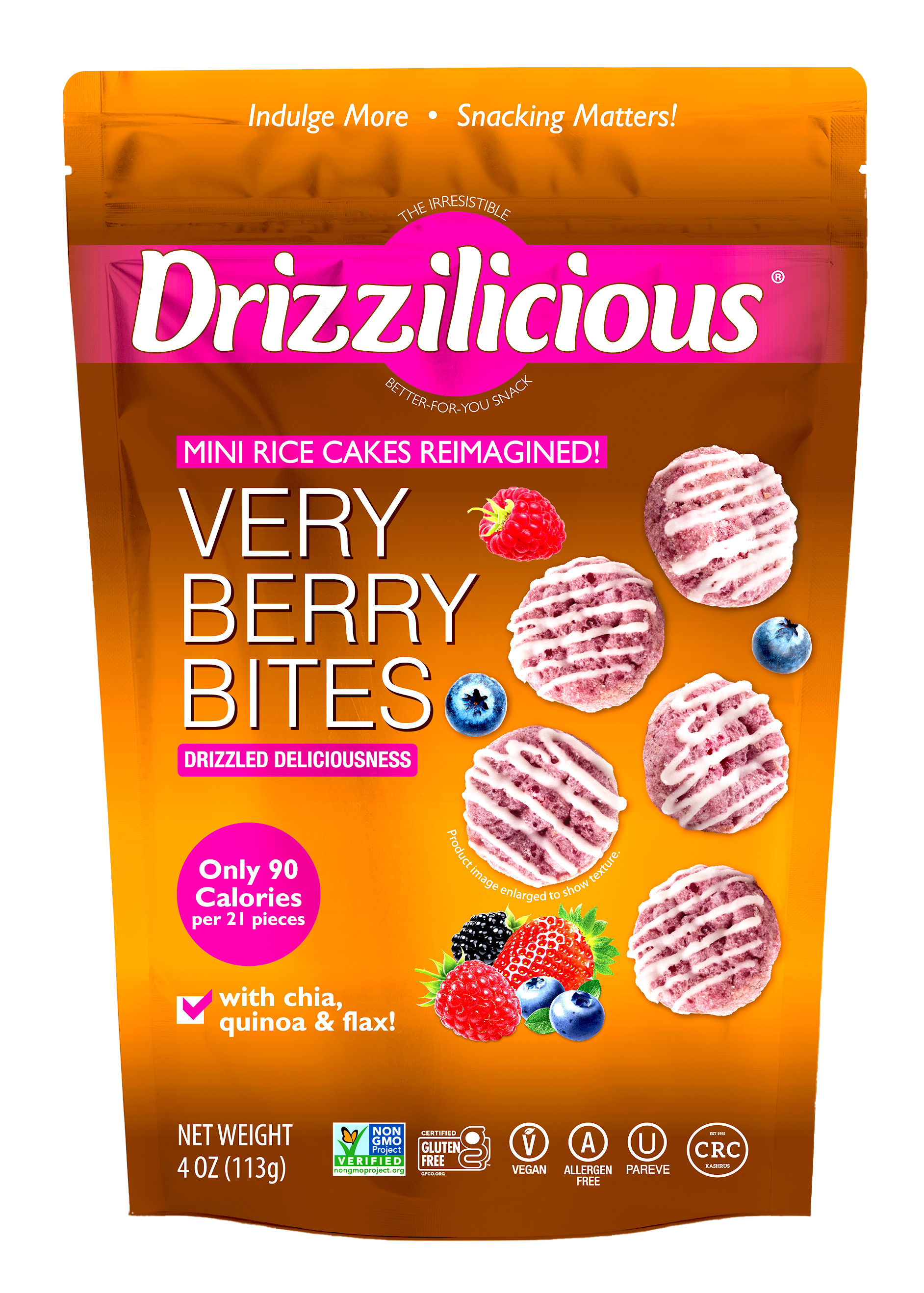 Our Drizzilicious Very Berry bites are mini rice cakes reimagined!